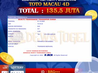 DEWATOGEL JACKPOT TOGEL DI TOTO MACAU 4D Rp 135.500.000,- LUNAS